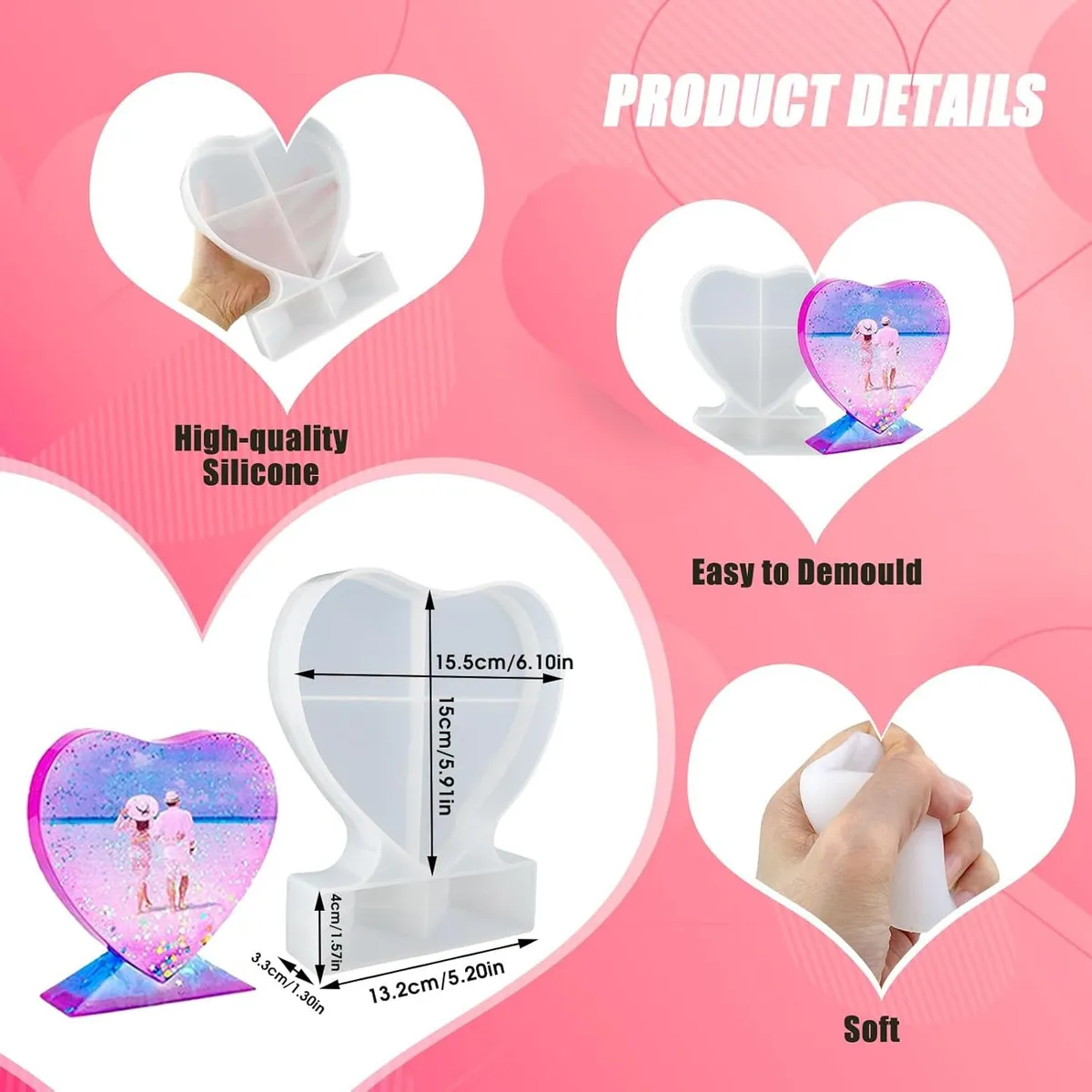 Haz que tus creaciones en resina sean aún más especiales con este molde en forma de corazón. Perfecto para proyectos DIY, decoración de eventos, piezas para regalar o accesorios personalizados, este molde de silicona es flexible, duradero y fácil de usar.