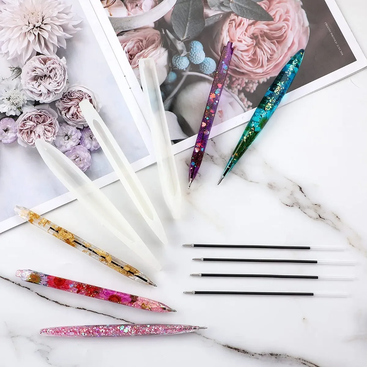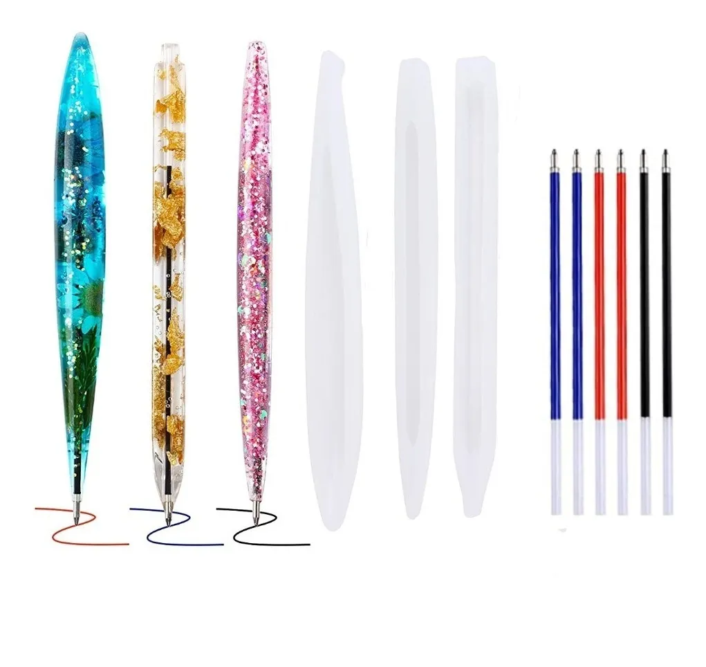 Set de moldes de silicona para crear bolígrafos personalizados con resina, ideal para proyectos DIY, regalos y accesorios creativos.